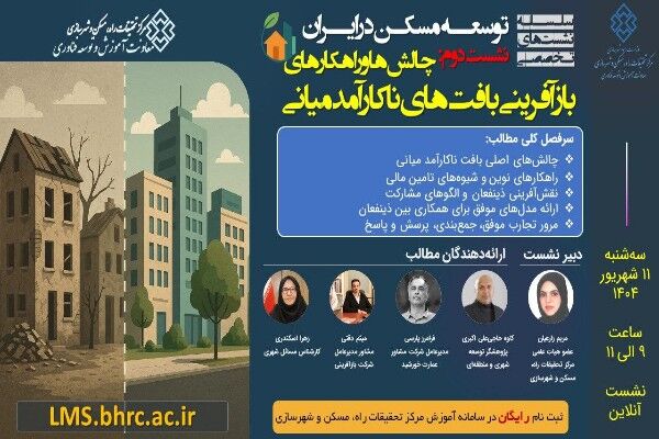 مرکز تحقیقات راه، مسکن و شهرسازی، نشست وبیناری «چالش‌ها و راهکارهای بازآفرینی بافت‌های ناکارآمد میانی» را با حضور کارشناسان و صاحبنظران برگزار می‌کند.